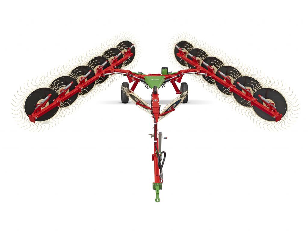 allowingit to rake in all types of ground contours in heavy hay conditions.